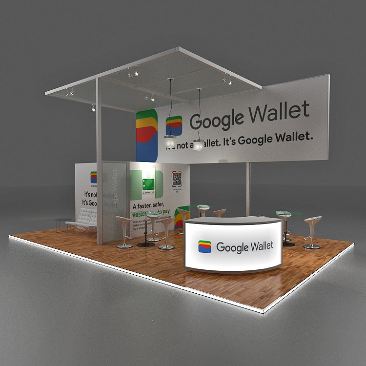 20 X 20 Modular Trade Show Booth - Google WalletRegular price $51,940.00 USDSale price $51,940.00 USD Regular priceUnit price perSale Sold outMake a lasting impact with the 20 X 20 Modular Trade Show Booth designed for Google Wallet. This sleek, modern booth is custom-built to elevate your...