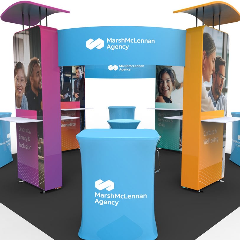 20x20 Waveline Island Tension Fabric Display with Tower and Waterfalls Brackets